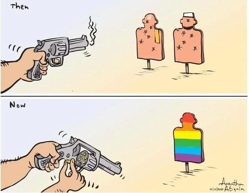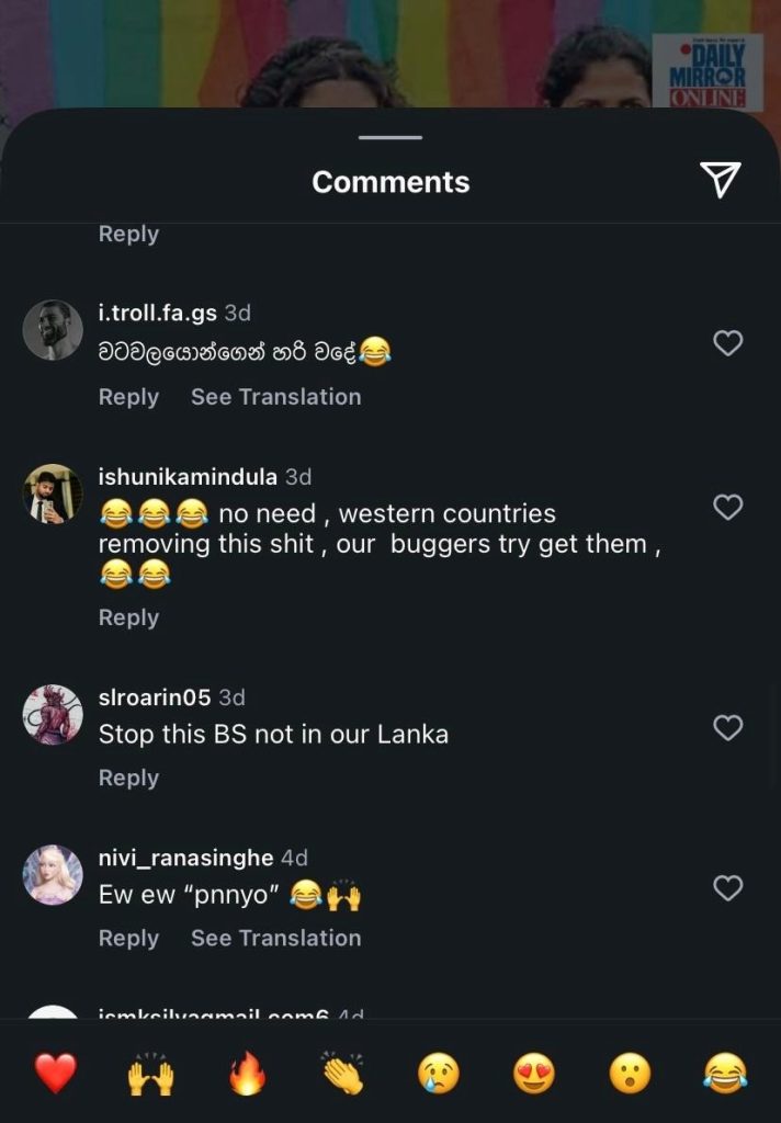Thousands of comments on Facebook and YouTube echoed the Cardinal’s rhetoric, warning of “Western attempts to destroy Sri Lankan culture.” Nationalist pages and influencers amplified the claims, branding queer Sri Lankans as “mentally ill” or “agents of the West.” One viral post read: “They are recruiting our children; foreign money is driving this.”