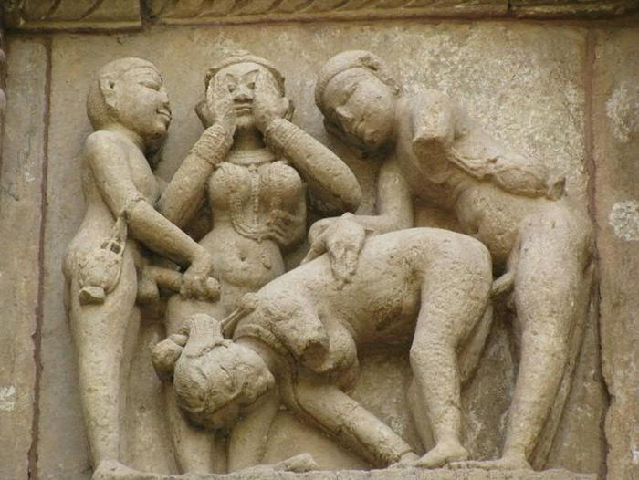 ඛජුරාවෝ පන්සලක පිහිටි අර්ධ උන්නත කැටයමක්, මධ්‍ය ප්‍රදේශ්, ඉන්දියාව