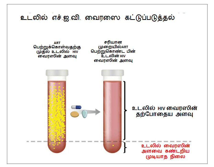 தற்போதைய ART சிகிச்சைகள், இரத்தத்தில் உள்ள வைரஸின் அளவைக் கண்டறிய முடியாத அளவிற்கு குறைக்கின்றன. வைரஸின் அளவு குறைவாக இருக்கும்போது, ​​எச்.ஐ.வி நோயால் ஏற்படும் பாதிப்பு குறைவாக இருக்கும். தற்போதைய எச்.ஐ.வி சிகிச்சைகளின் நோக்கம், வைரஸைக் கண்டறிய முடியாத அளவில் வைத்திருப்பதே ஆகும்..