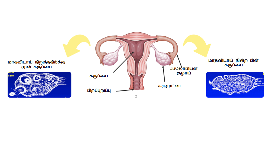 பல வருடங்களாக சுழற்ச்சி முறையில் நடைபெற்ற மாதவிடாயானது ஒரு வயதிற்கு மேல் நின்றுவிடும் அக்காலபகுதி மாதவிடாய் நிறுத்தம் என அழைக்கபடுகின்றது.